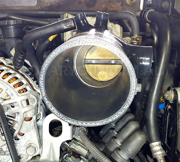 Replaces the factory corrugated rubber intake pipe that is prone to crack at the throttle body end.